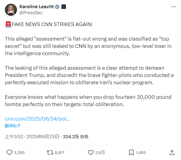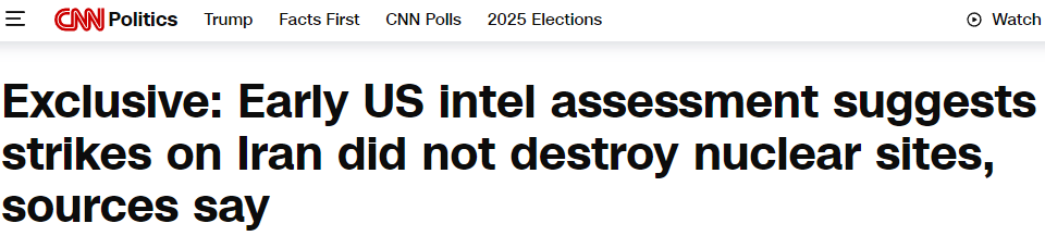 美军6月23日空袭伊朗三处核设施后国汇策略,美国政府和美国媒体突然吵作一团,美国有线电视新闻网(CNN)一条“伊朗核设施未被完全摧毁”的报道,受到了从白宫发言人到特朗普本人的“联合围剿”。