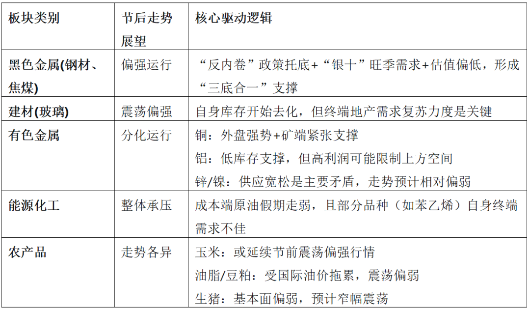 “国内商品走势的核心逻辑在于外盘价格与国内需求的协同作用。若外盘维持强势且节后消费数据验证内需复苏,国内商品价格有望同步走高;若外盘波动加剧或国内需求修复不及预期,价格上行空间可能受限。”顾佳男说。