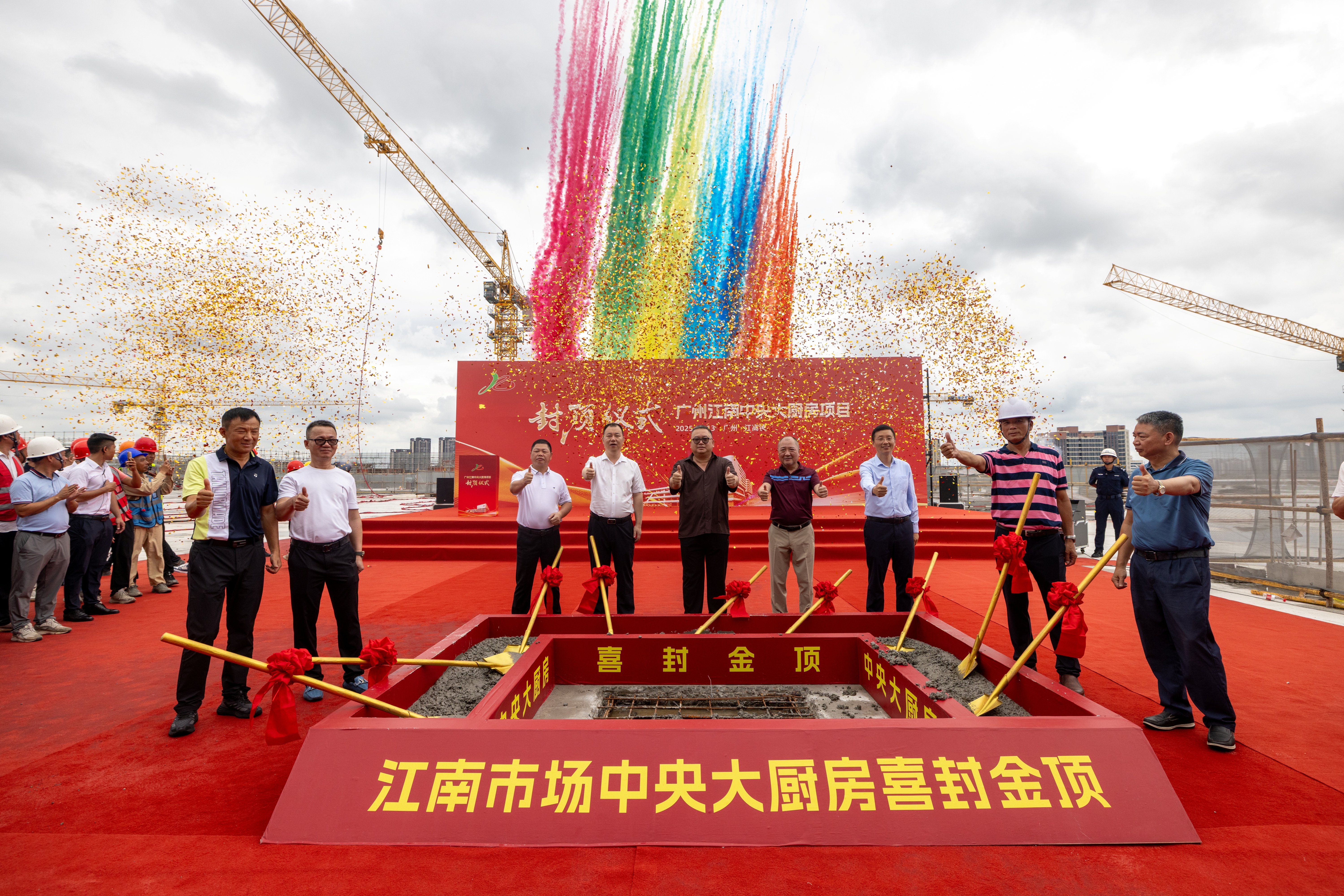中央大厨房项目西区交易区正式封顶尚红网 。图|石建华