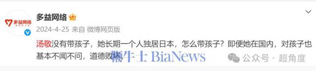 多益网络还称汤敬没有带孩子,她长期一个人独居日本,没法带孩子,即便在国内,对孩子基本不闻不问。